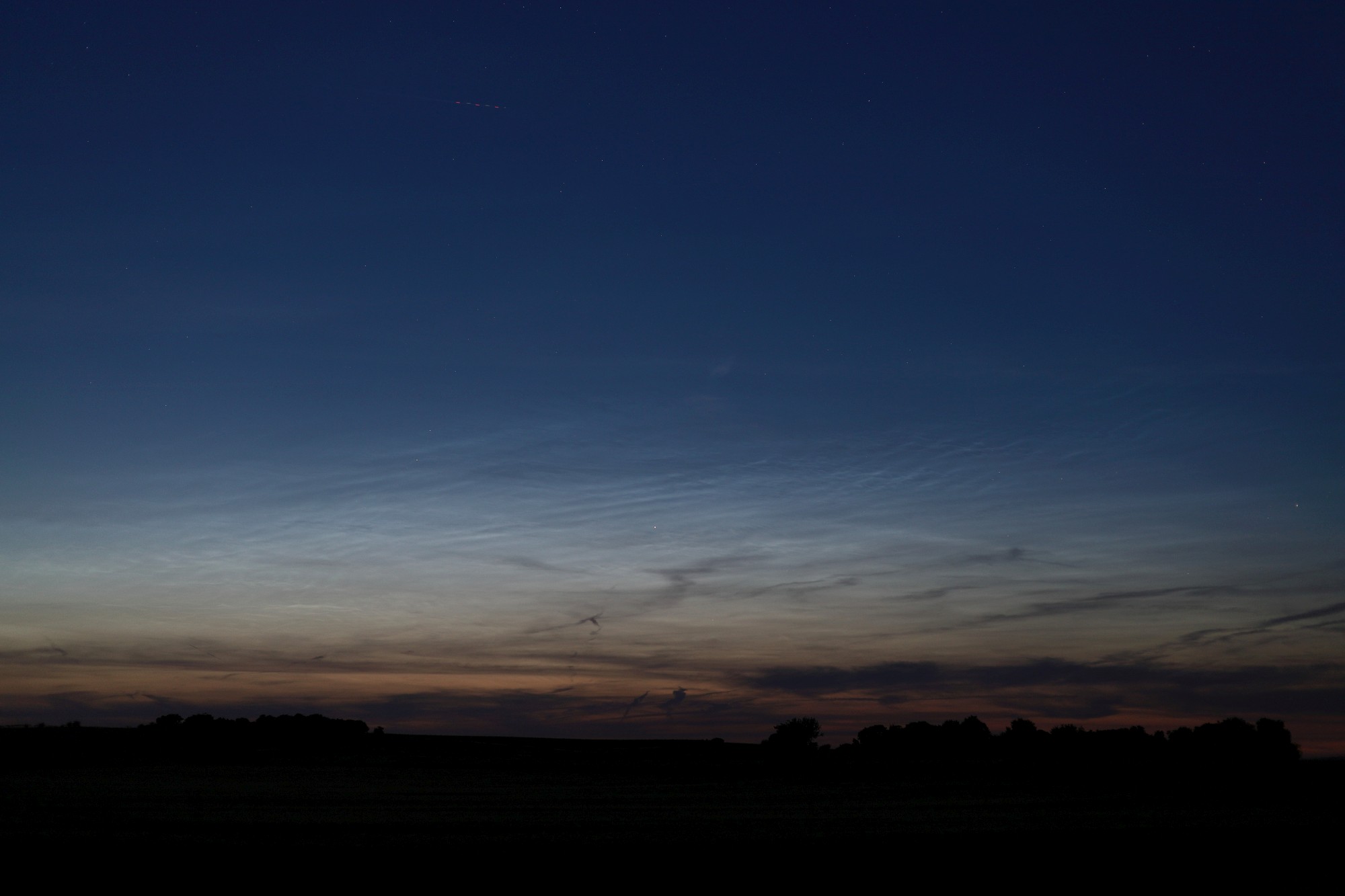 Vom Rendezvousberg am Nordrand von Wien waren von 22:20 bis 22:45 MESZ mit freiem Auge NLCs zu sehen, deutlich mit Helligkeit 3.