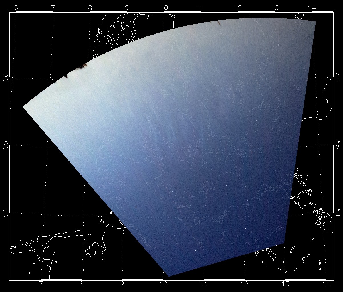 Und das erste Bild als Kartendarstellung. Für die Höhe der NLC habe ich 82,5 km angenommen. Die NLC reichten ziemlich genau bis zur deutsch-dänischen Grenze nach meiner Berechnung. Nach Stefans Analyse lagen sie ein Stück weiter südlich.