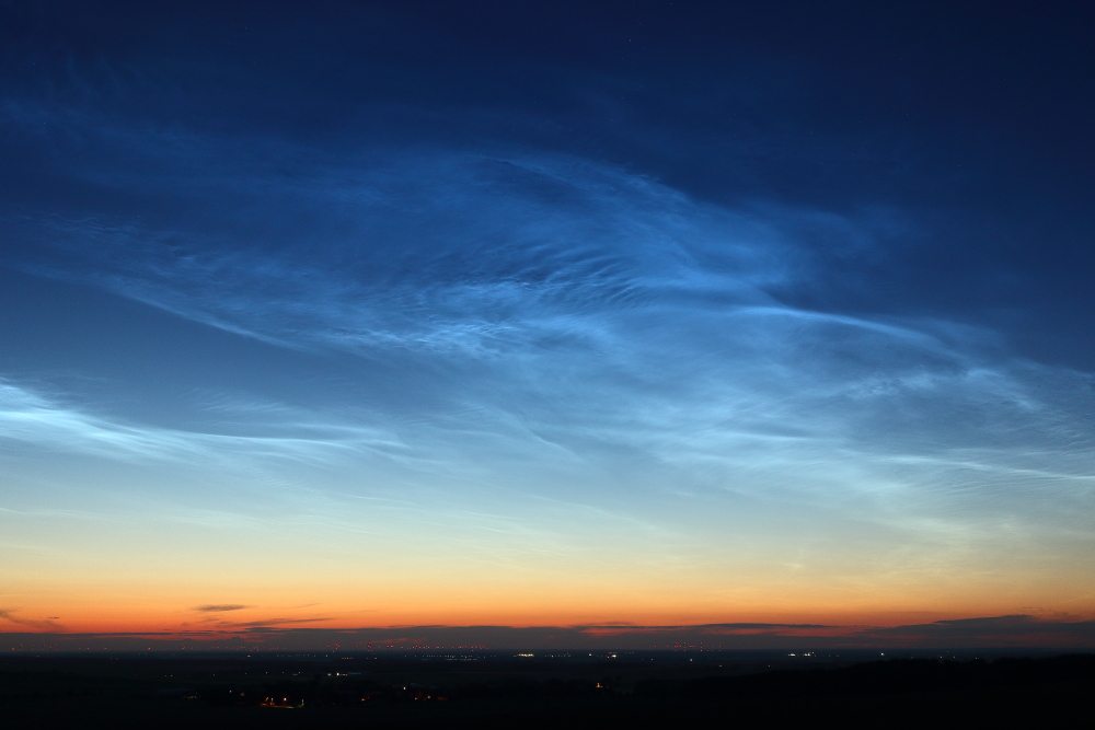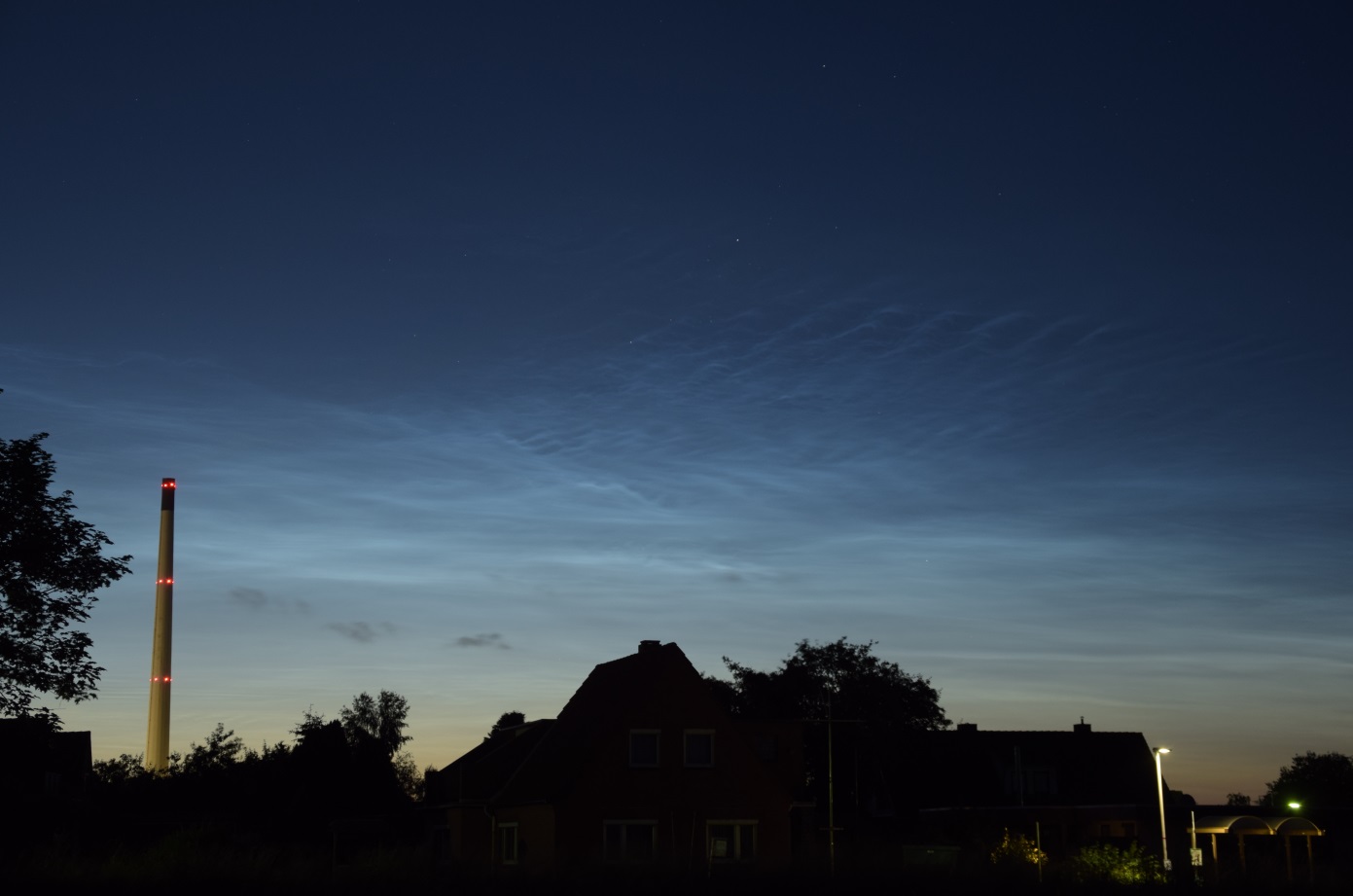 hier ein Panorama von 2:40 MESZ aus der Nähe von Heiligenhafen. Das war ein wirklich großes NLC-Ereignis heute Morgen. Später waren sogar der Mond und Jupiter von NLC umgeben. An den Bildern aus Leipzig ist auch offensichtlich, dass da eine große NLC-Front von Osten hineinzog. Später mehr.