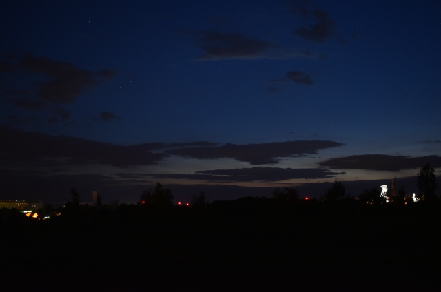 Das Abenddisplay konnte ich nur wegen Bewölkung nur kurz duch eine Wolkenlücke beobachten und fotografieren ( zumindest bin ich mir recht sicher das es NLCs sind). Die Helligkeit würde ich 2 schätzen ( lässt sich leider schwer sagen da ich das Display nur für einen kurzen Moment gesehen habe).