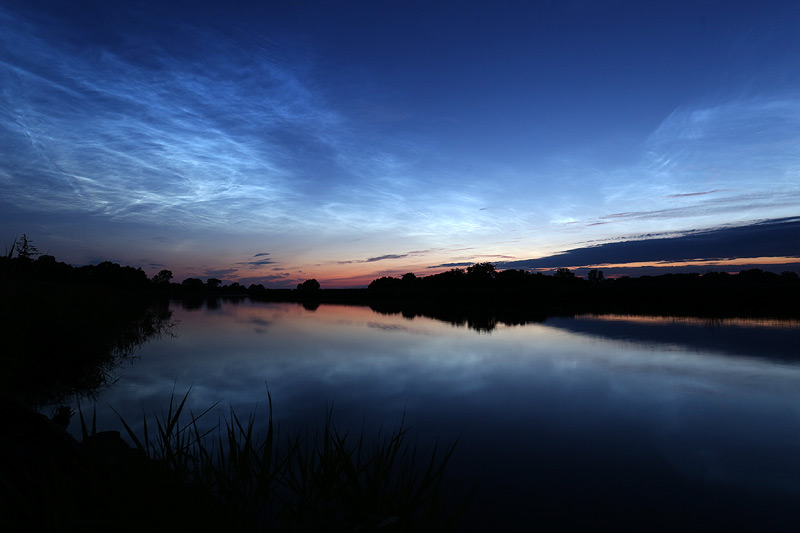 Danach begab ich mich an den Ryck und suchte eine Position auf, die mir einen halbwegs brauchbaren Blick in westliche Richtung versprach. Normalerweise sind die NLC ja auf die andere Seite vom Ryck beschränkt, also auf das nördliche Ufer. Heute aber war das anders, die NLC reichten bis weit in den Westen.