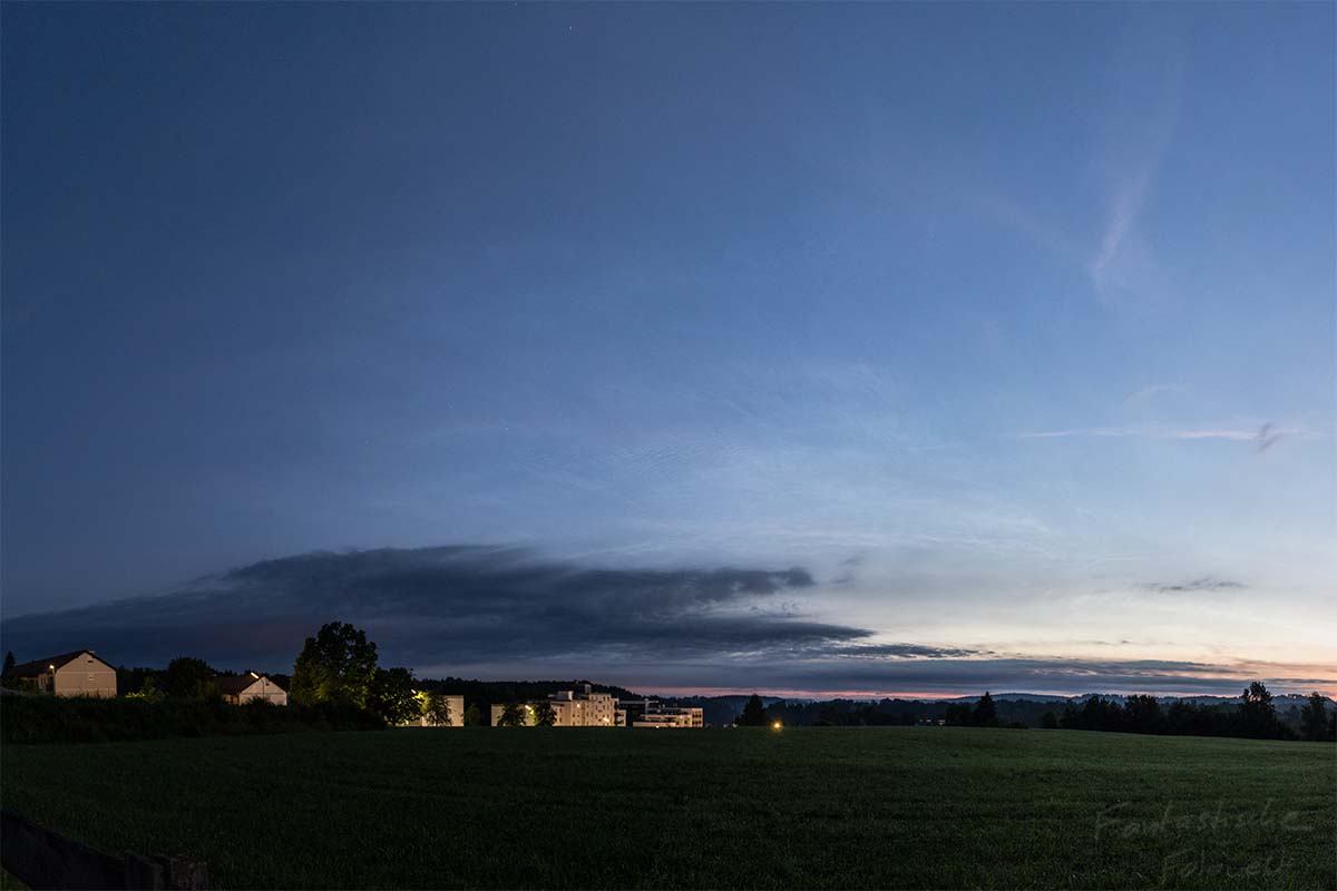 EDIT 21:15 UT: jetzt in Lücken die ersten visuellen NLC von hier aus; in N scheinbare Obergrenze bei 10° und weitere NLC in tiefer, noch recht heller Lücke in NNO