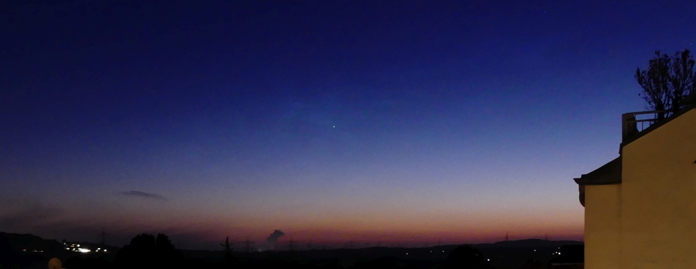 Das mit dem Zigarettenrauch trifft's ganz gut... die helleren Flecken über dem Dach in der Mitte. Hab den Kontrast ein bisschen verstärkt, um die NLCs besser sichtbar zu machen- die waren im Original mehr zu ahnen als zu sehen und sind auch ziemlich schnell in der Dämmerung untergegangen.