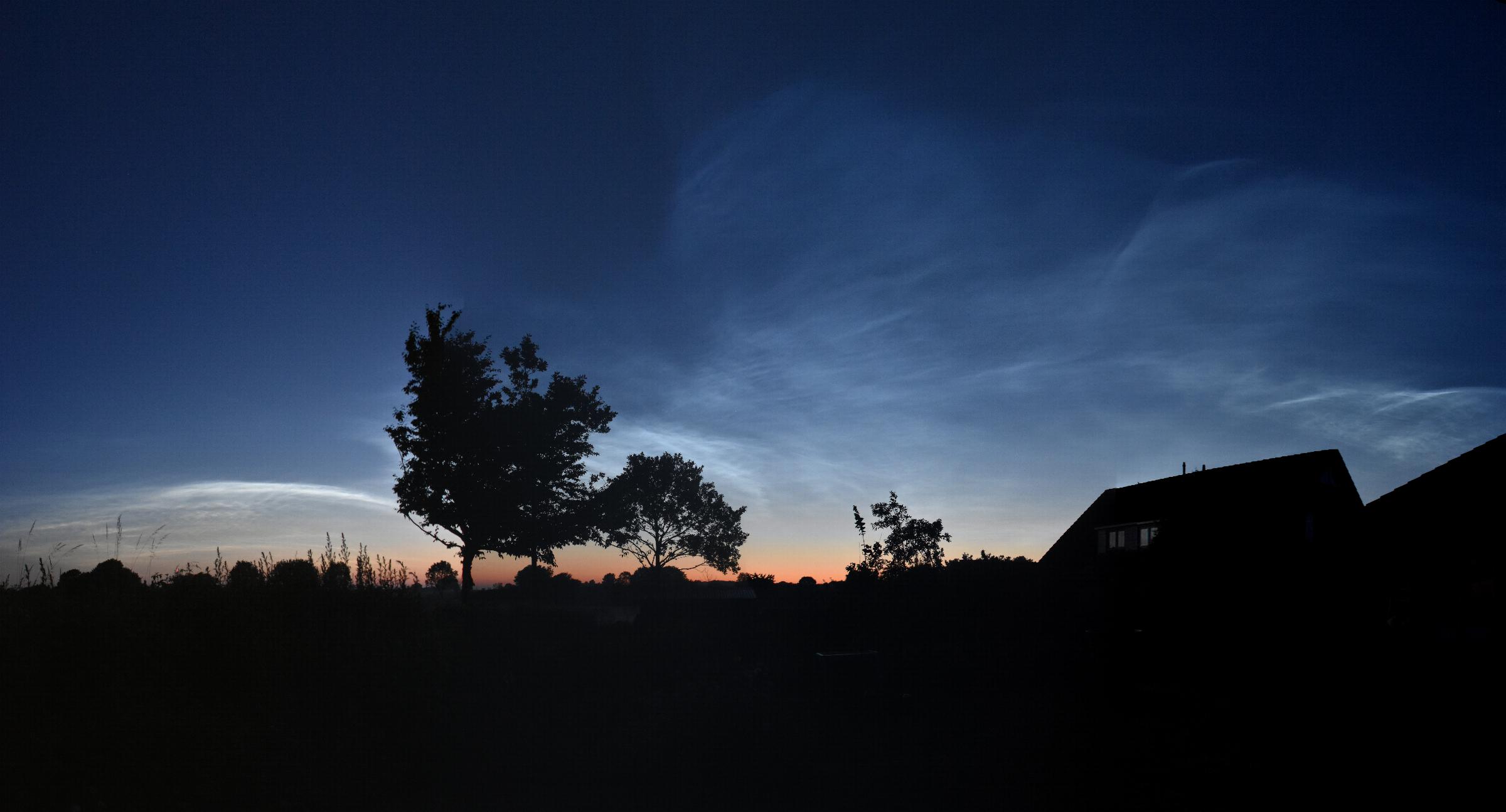 Die NLCs kommen jetzt (2Uhr MESZ) in Berlin aus dem Küchenfenster gesehen über die Baumwipfel.