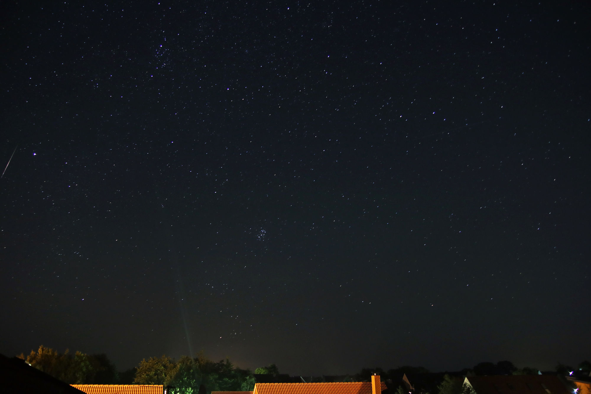 vom heimischen Garten in der Bonner Südstadt aus haben wir in etwa 90 Minuten (zwischen 01:35 und 03:05 MESZ) 34 Sternschnuppen gezählt, alles Perseiden. Darunter waren auch einige recht beachtliche Exemplare mit kurzem Nachleuchten.