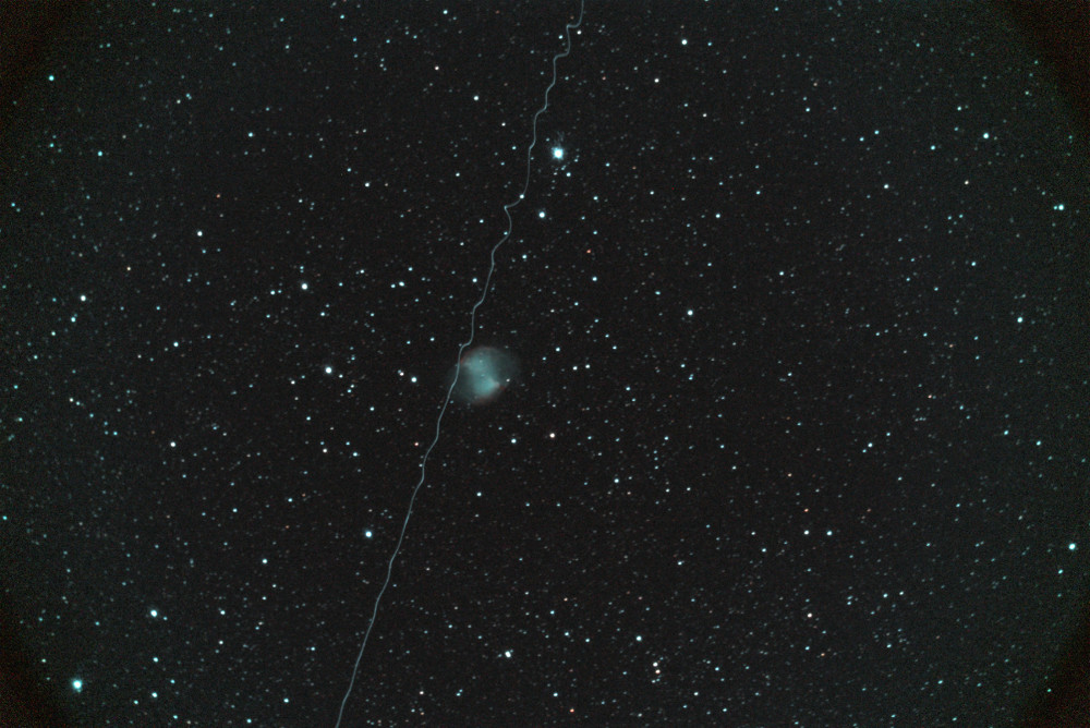 Diese Sache hab ich mir auch schon durch den Kopf gehen lassen, genau so da wohl Wodka in einer Sojuskapsel im Spiel war. Aber egal, Würmchen oder Käfer ich habe eine Balkonsternwarte in einer Höhe von ca 10 Meter über NN (Gehweg) Dazu kommt dass das Objekt auch noch höher sein sollte. Von daher vielen Dank für die Würmchenanteilnahme, aber das glaube ich eher weniger. Zur Farbe: ich verwende einen CLS Filter da ich vom Stadtrand Karlsruhe aus fotografiere. Tatsächlich habe ich hier in Fitswork "Umgebung schwarz, Pixel weiß" durchgeführt. Das Rohbild zeigt aber auch nichts Laserpointer mäßiges. Vor allem hätte ich den auch sehen müssen bei der Helligkeit, ich saß wegen den Wolken neben dem Rohr mit der Fernbedienung für die Kamera in der Hand. Ein torkelndes Weltraumschrottteilchen fände ich im Moment ganz nett. In größerer Höhe torkelt es, weiter unten stabilisiert sich die Bahn. Mal sehn, vielleicht hat noch jemand einen Gedanken.