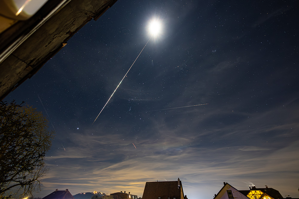 durch Zufall konnte ich während meiner abendlichen Halobeobachtung (unter anderem ein ZHB, siehe: https://forum.meteoros.de/viewtopic.php?f=2&t=63219) diesen langen und durchaus hellen Meteor beobachten: