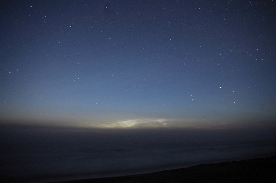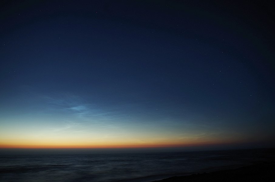 Das war ein sehr dynamisches NLC-Feld, das ziemlich flott nach Südwesten zog. Speziell gen Ende der Beobachtung änderte sich das Bild von Minute zu Minute daher ziemlich stark.