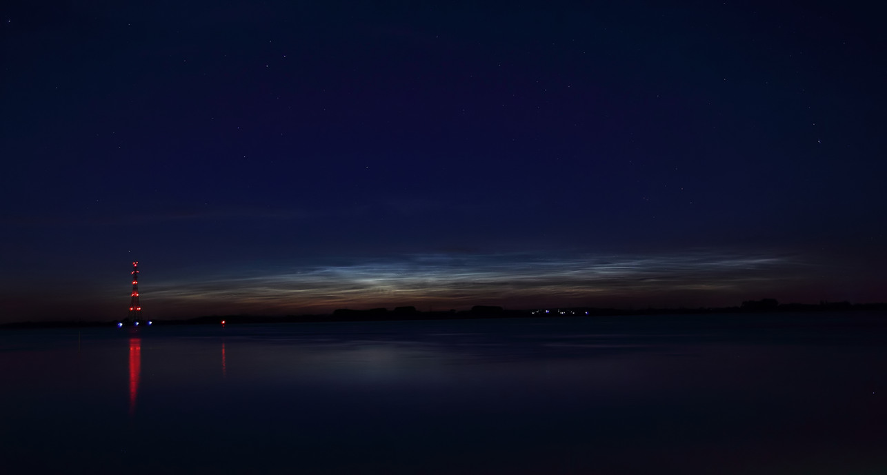 schönes Bild und man sieht auch schön die Dämmerungskante(rötliche Oberkante der NLC, wo nur noch rotes Licht die NLC trifft).