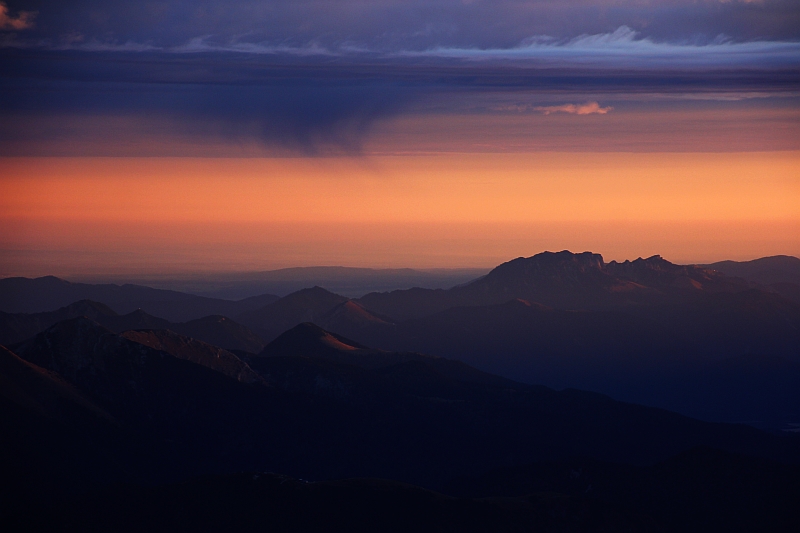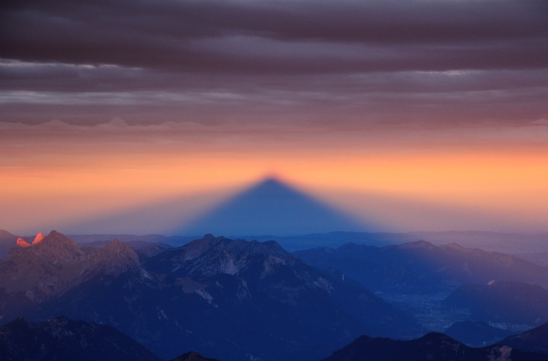 Der Sonnenaufgang am 6.11. war der Hammer. Anfangs gab es Strahlen am Himmel, später an einem durchziehenden und sich dabei auflösenden Niederschlagsgebiet atemberaubendes Zero Order Glow. Auch der Bergschatten war wie aus dem Bilderbuch in den Dunst projiziert.