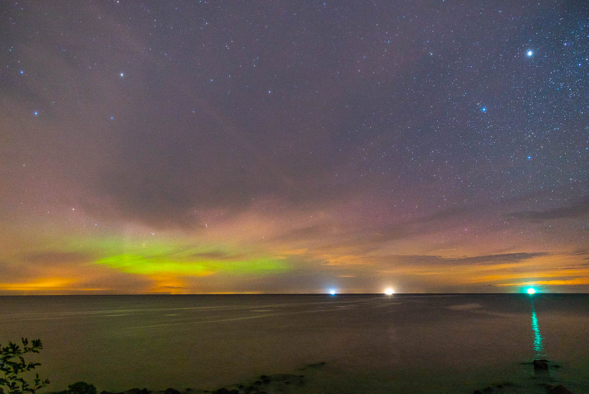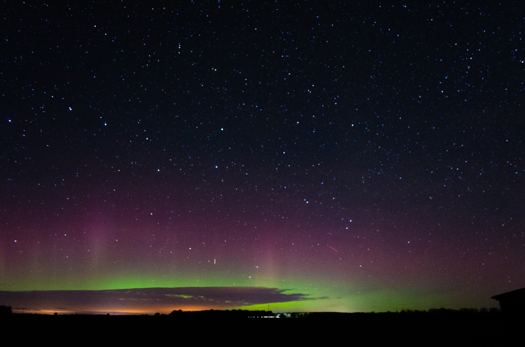 Unfortunately clouds near northern horizon hides the most of aurora here. But for solar minimum it was nice.