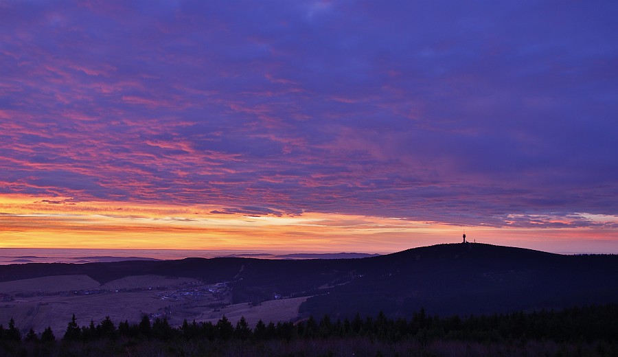 Heute gab es auf dem Fichtelberg das 13. Morgenrot in Folge. Dazu einen fast 7 Minuten andauernder Nowaja Semlja-Effekt, bevor sich die Sonne dann doch noch dazu entschlossen hat, über den Horizont zu wachsen.