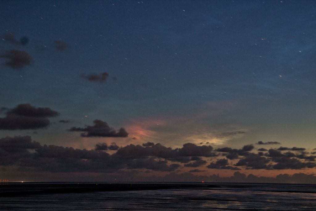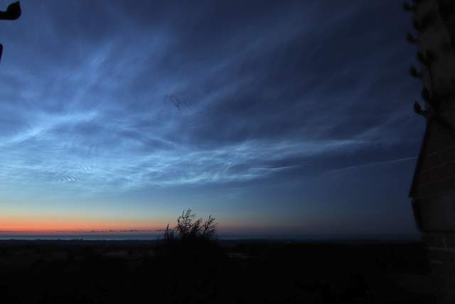 Recht schnell zogen dann aber die störenden Wolken ab und gaben den Blick auf das immer noch große Feld leuchtender Nachtwolken frei, so das mir erste schöne Bilder des großen Displays gelangen. Die Helligkeit ist aufgrund der teilweisen Verdeckung schwer zu beurteilen, aber ich würde es anfangs auf 4 schätzen.