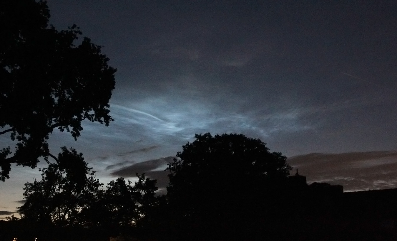 Der späte Blick in die Mails hat sich gelohnt, im Landkreis Harburg konnte ich in Richtung NW zumindest kurz noch welche sehen. Fotografiert aus einem Dachfenster, ohne Stativ, daher ISO 6400... musste eben schnell gehen. Beeindruckend, ich hatte vorher noch nie bewusst NLCs wahrgenommen!