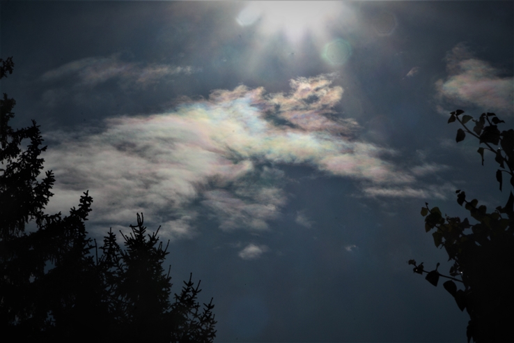 Gestern (11.01.2020) hatten wir wieder einen schönen Sonnenaufgang mit Vörwärtsstreuung am den Bäumen am fernen Hang. Nachmittags dann prächtiges Irisieren (auch mit bloßem Auge sehr farbig, was sehr selten ist!). Ich hielt die Wolken für (unterkühlte) Cirren, vermutlich waren sie im Bereich zwischen Ac und Cc. Bei Sonnenuntergang dann noch ein sehr intensives Abendrot wie schon mehrfach in den vergangen Wochen, aber da war ich unterwegs und konnte keine Bilder machen.