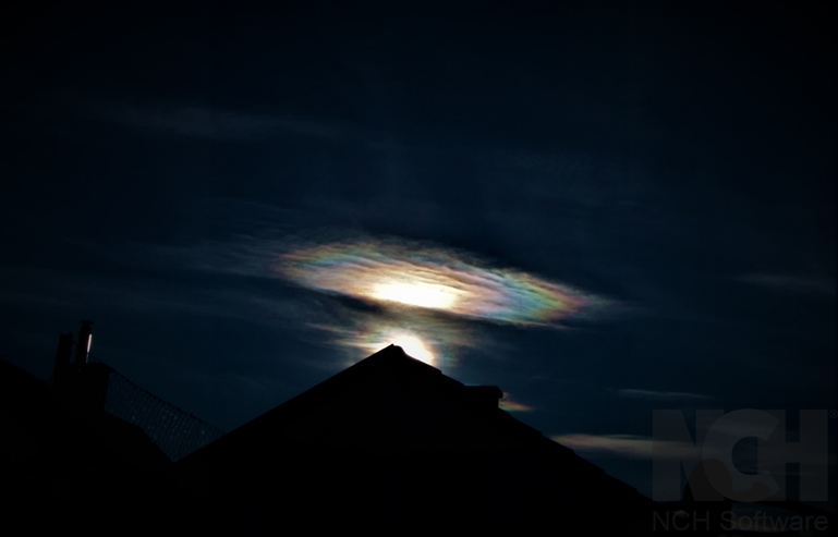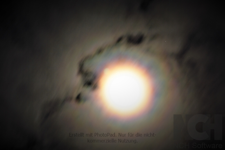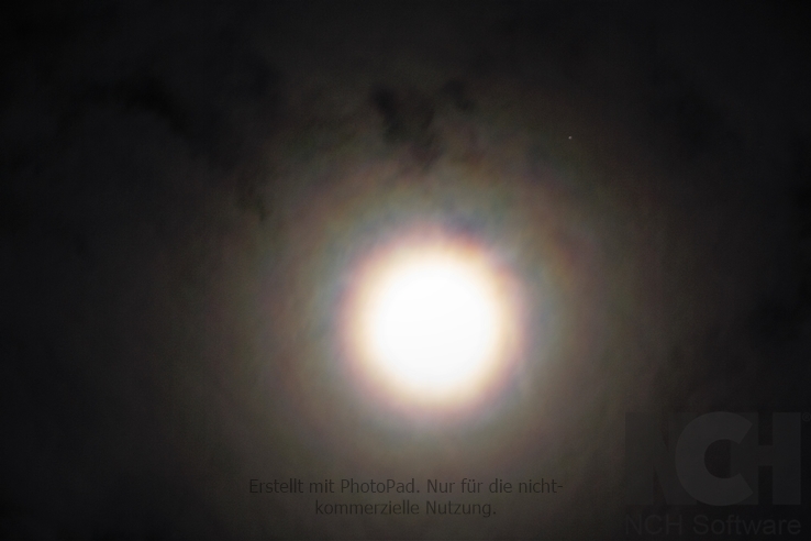 Gestern Nacht am 27.01. zeigte sich eine sehr intensive Aureole um den Mond an einem tiefen Ac str