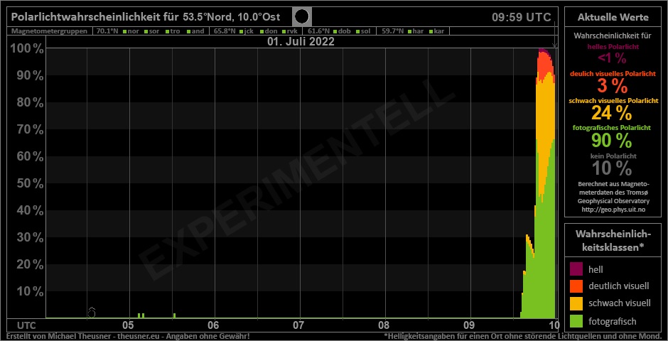 Aktuell sollte man mal auf die Aktivität achten. Zurzeit sehr gute PL-Chancen. Mal schauen ob das bis in die Dunkelheit anhält. Und dann auch noch fast Neumond