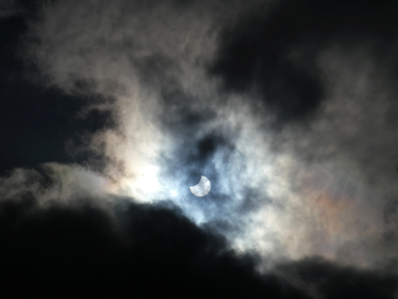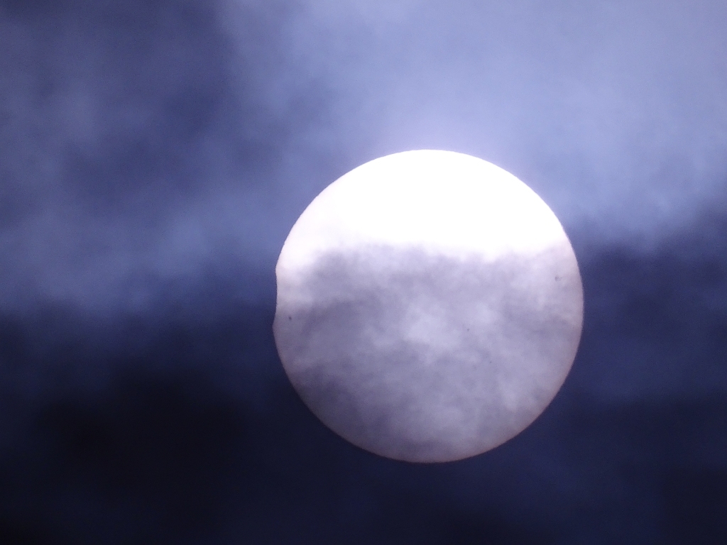 Ach ja, von mir auch noch 3 Bilder von der Sonnenfinsternis, durch Wolken gemacht, also quasi mit Stratocumulus-Filter