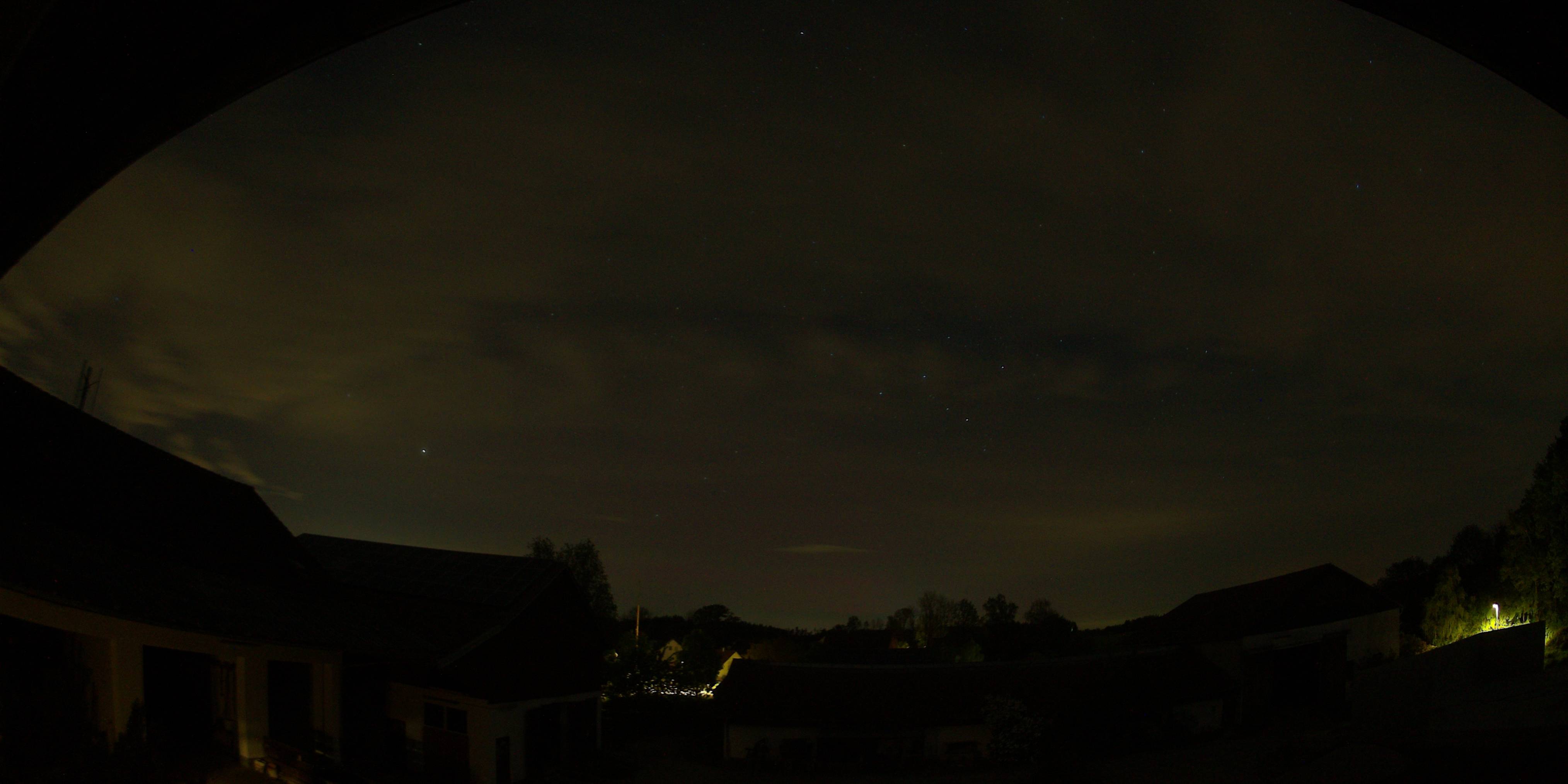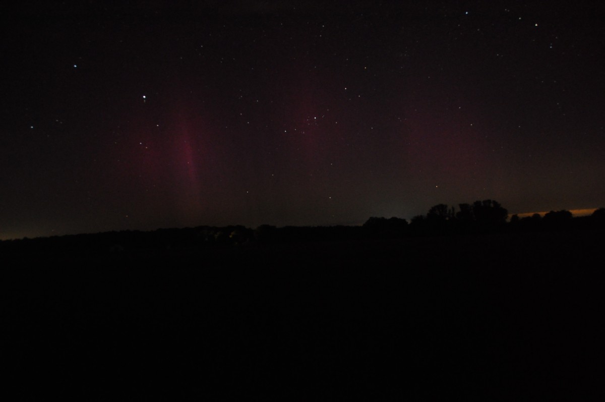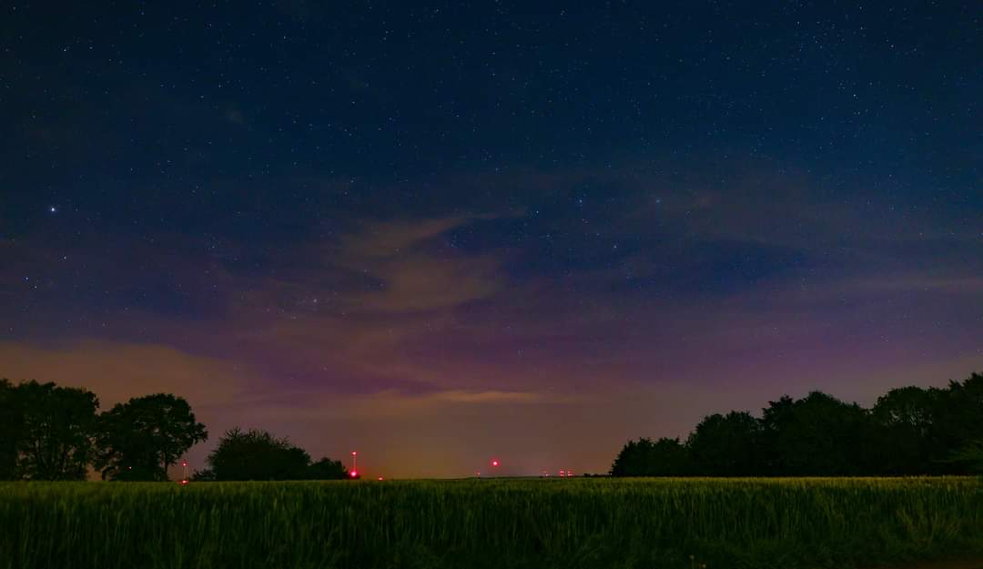 Glücklicherweise setzte der erste Substorm erst kurz nach meiner Ankunft bei Horndorf um 23:41 MESZ ein. Dabei waren die Strahlen schwach visuell zu erkennen. Da die Lichtglocke von Hamburg dort jedoch sehr störte, bin ich um 00:15 MESZ noch 20 km weiter nach Osten gefahren und war für den Rest der Nacht in Lüben/Göhrde. Dort war der Himmel im Nordwesten schon deutlich dunkler. Abgesehen von der Himmelsrichtung ist es dort sonst sehr dunkel.