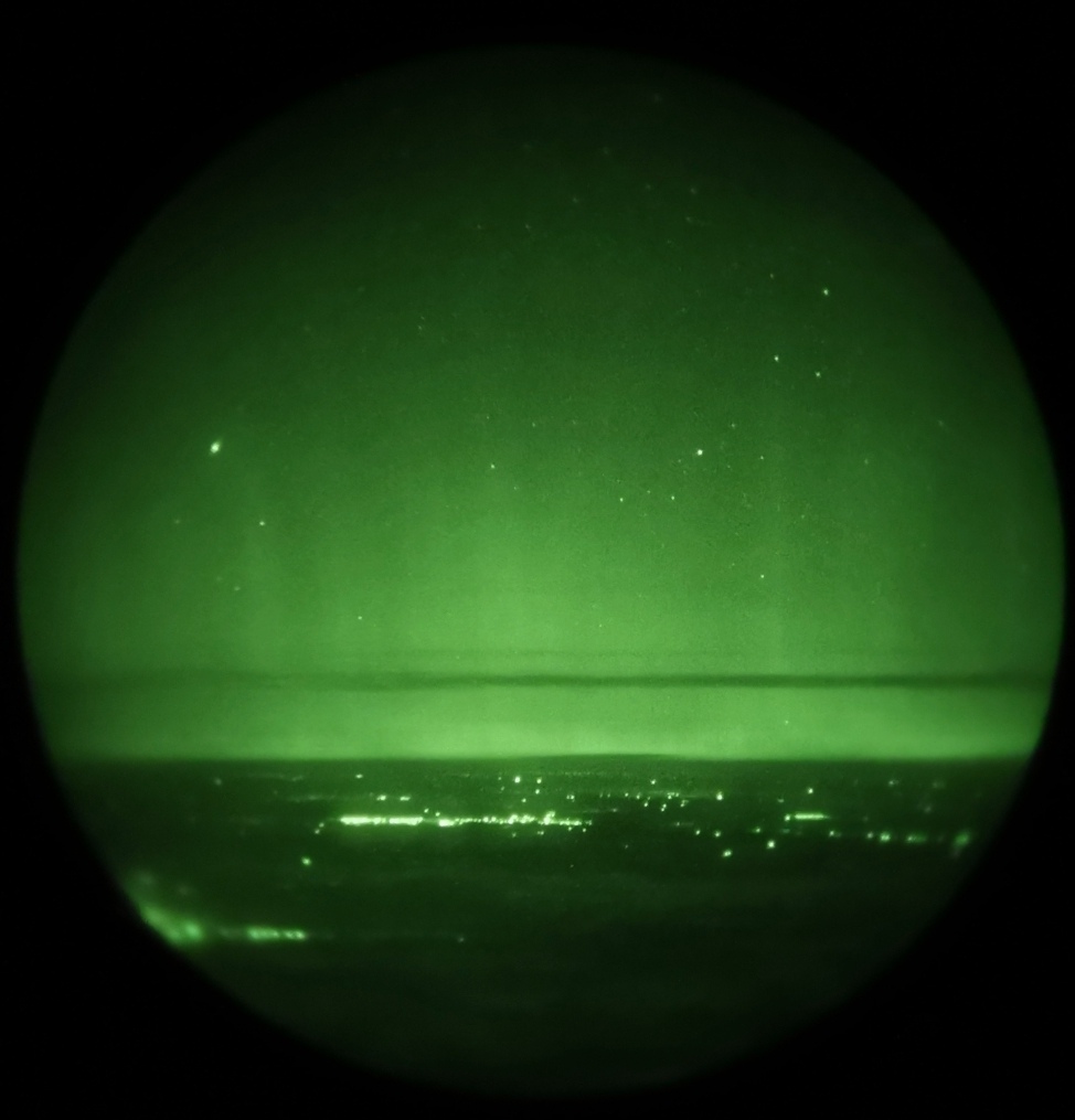 Hallo zusammen, ich habe mich neu angemeldet, da ich mir hier im Forum eine Antwort erhofft habe zu dem Himmelsphänomen, welches ich Montag früh um 01:48Uhr MESZ im Einsatzflug nahe Gronau mit einer Nachtsichtbrille deutlich habe wahrnehmen können. Flughöhe circa 1.500ft / 500m, Blickrichtung Nord. Zwar habe ich nach durchlesen diesen Themas keinen Zweifel mehr, dass es sich um ein Polarlichter handelte, möchte euch aber mein Bild nicht vorenthalten.