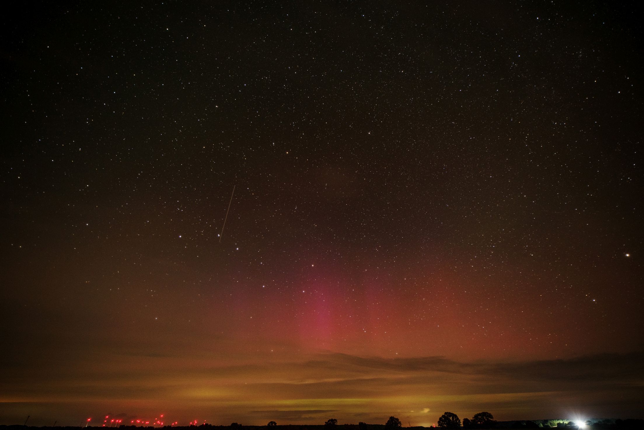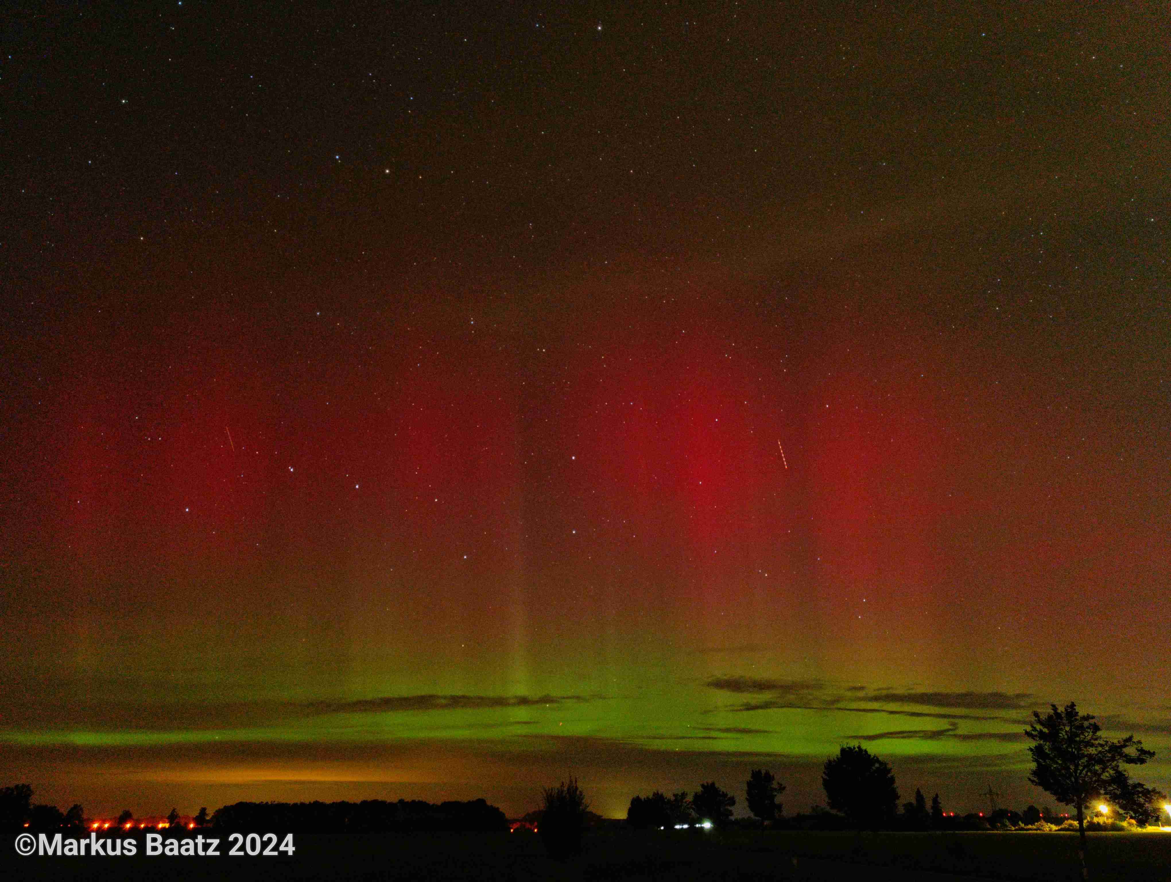 Nachdem die Wolken gegen 23 Uhr aufgerissen waren hatten wir auch in Riesa tolle Sicht auf das Display. Selbst durch den Nebel und Wolkenlücken deutete sich schon farblich etwas an.