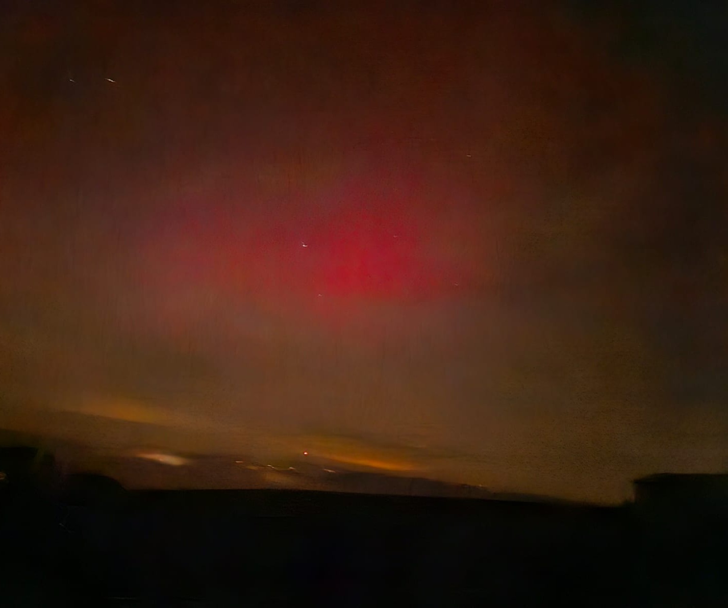 In Lörrach zwischen ca. 18:20 bis 18:50 fotografisch, ab 18:30 für ca. 3 min schwach visuell rotes Glimmen in einem relativ kleinen Bereich, zeitgleich mit den starken Ausschlägen an den norwegischen Magentometern.