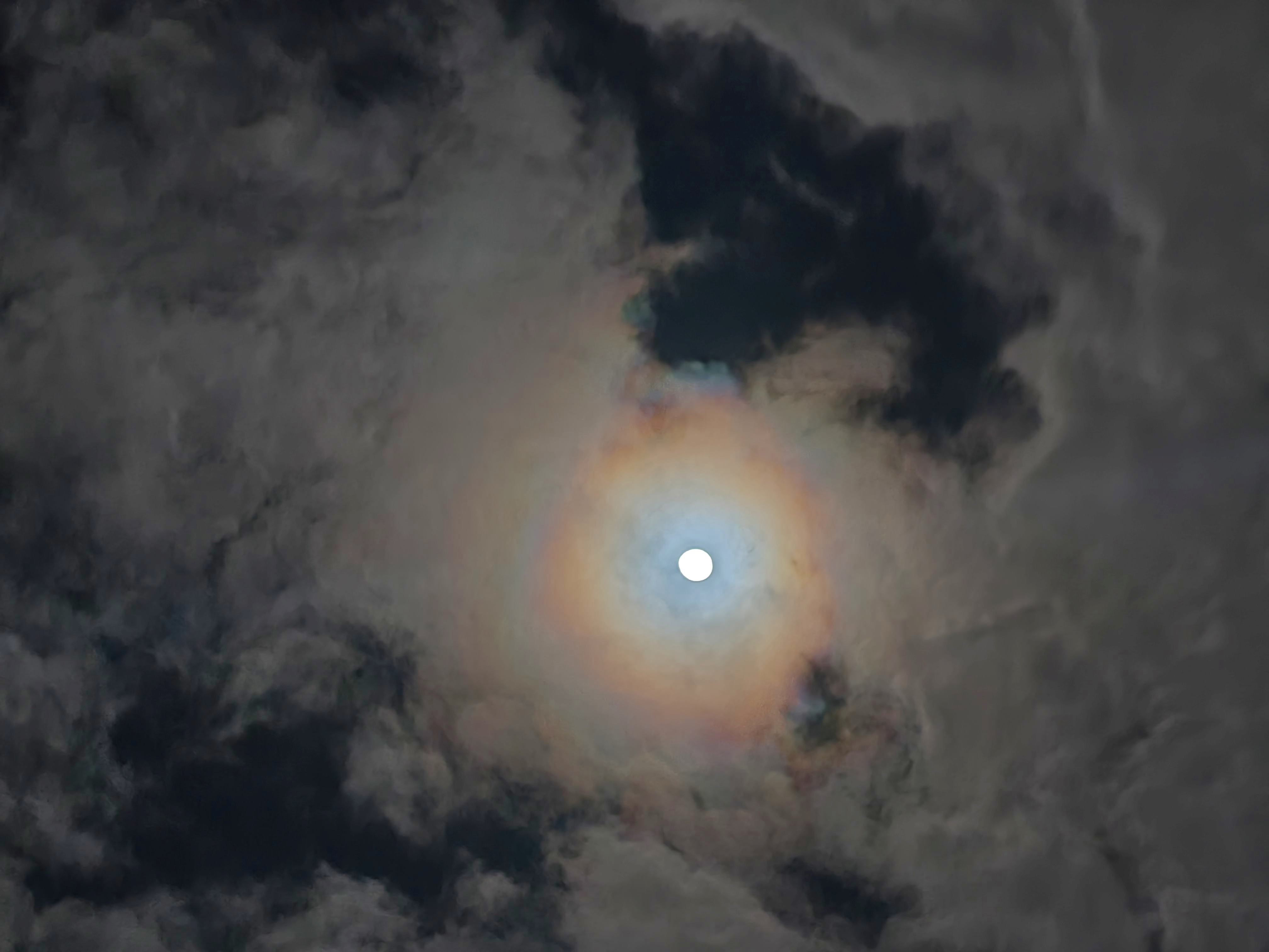 Letzte Nacht habe ich eine Mondkorona beobachtet. Die Korona erschien am Rand einiger Altostratus translucidus-Wolken, die den Himmel zu bedecken begannen. Es wehte ein starker, kalter Wind.02.01.2025-19.16.